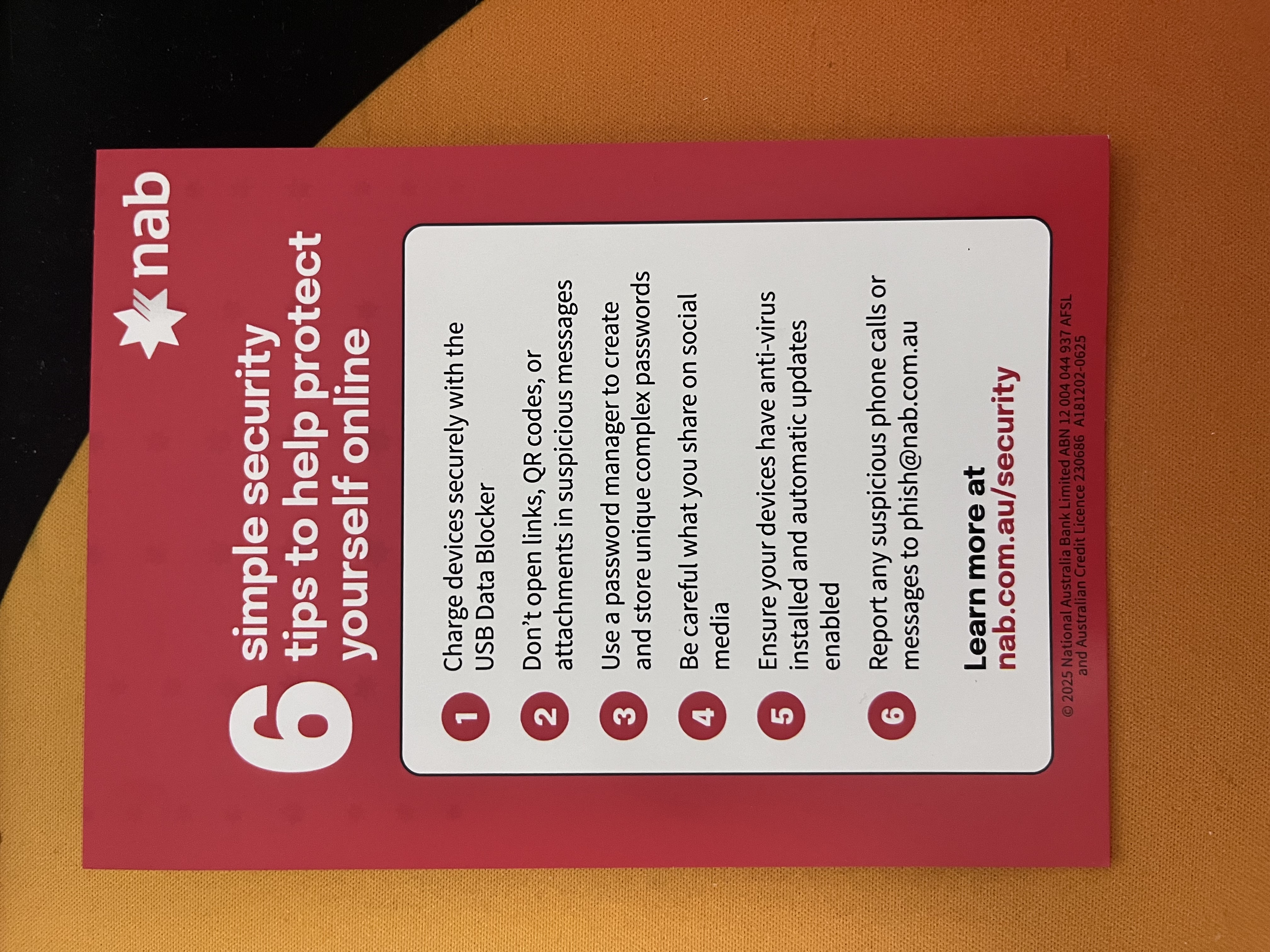 I recently attended CyberCon 2025 in Melbourne, where NAB (National Australia Bank) was handing out USB “data blocker” devices as promotional items. The irony wasn’t lost on me: at a cybersecurity conference, attendees were being given opaque, sealed USB devices and expected to trust them.
